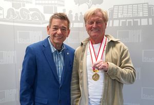 Bürgermeister Werner Arndt begrüßt Fußball-Weltmeister