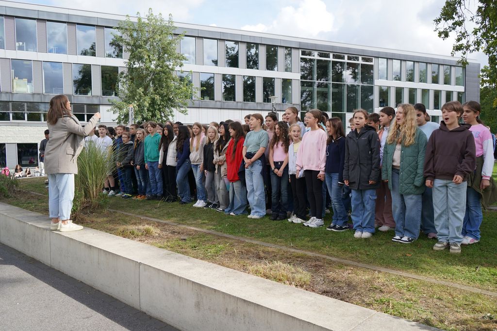 Musikalisch eröffnet wurde die Feierstunde von Jule Arnold an der Geige mit ihrem Vater am Klavier. Einen Impuls des Friedens im Gedenken an Albert Schweitzer gab die Klasse 9a unter der Leitung von Dr. Werner Lütkenhaus. Der musikalische Ausklang von der Jahrgangsstufe 6 wurde begleitet von der Fachschaft Musik und der Schulgemeinschaft.