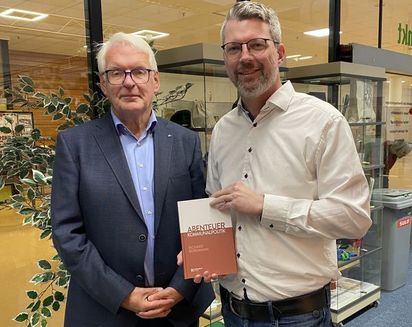 Die Buchübergabe im Stadthaus 2 bot Gelegenheit zum Austausch über kommunalpolitische Erfahrungen. Bürgermeister Thomas Terhorst erklärte: „Ich freue mich über die persönliche Widmung von Richard Borgmann und das gute Gespräch über unsere gemeinsamen Wurzeln sowie über verschiedene lokalpolitische Themen.“