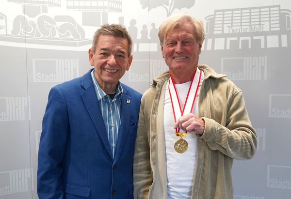 Beim Besuch im Stadthaus hatte der 76-Jährige natürlich auch seine Goldmedaille mit im Gepäck – und auch eine Menge Geschichten vom Turnier. Im kommenden Jahr kann Günter Zaborowski übrigens den Titel mit der Nationalmannschaft verteidigen. Dann findet die Weltmeisterschaft im australischen Brisbane statt – und dann wird Werner Arndt auch sicher wieder die Daumen drücken: „Denn ganz so viele Weltmeister haben wir in Marl noch nicht.“ Dann hoffen die beiden unisono auf ein ähnliches Abschneiden.