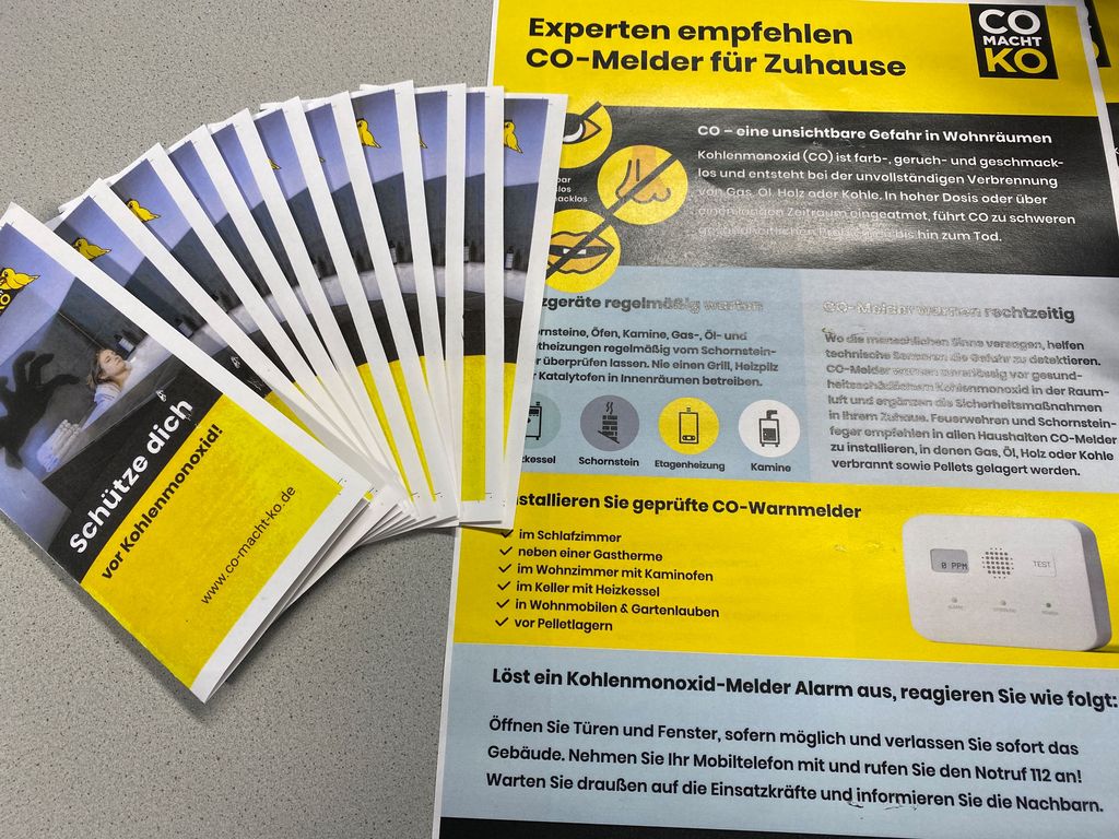 Kohlenstoffmonoxid, kurz Kohlenmonoxid (CO), ist ein gefährliches Atemgift. Das Tückische daran: Man kann es nicht sehen, riechen oder schmecke, es kann aber zum Tod führen. Betroffene bemerken nicht, wenn sie Kohlenmonoxid einatmen, denn es gibt keine typischen Symptome wie Husten oder Atemnot, auch sieht man keinen Rauch oder Feuer wie zum Beispiel bei einem Brand. Deshalb lautet der Appell von Roman Engler, Leiter des Amtes für Feuerwehr: „Jeder Haushalt sollte einen CO-Warnmelder zusätzlich zu den Rauchwarnmeldern haben, wenn fossile Brennstoffe wie z. B. Holz und Gas verbrannt werden.“