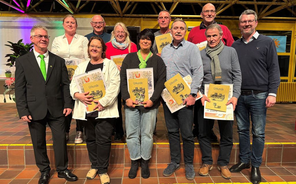 Emotional wurde es bei einer echten Überraschung für Wolfgang Fuchs, dem scheidenden Vorsitzenden des Bezirksverbandes. Sein Nachfolger Norman Biagini zeichnete ihn für sein jahreslange Engagement mit der silbernen Ehrennadel des Landesverbandes Westfalen und Lippe aus. Zudem gab es zwei runde Geburtstage und die entsprechenden Ehrungen: Denn sowohl die Anlage (KGA) „Im Hembrauk“ als auch „Zum Sauerbruch“ feiern in diesem Jahr ihr 75-jähriges Jubiläum.