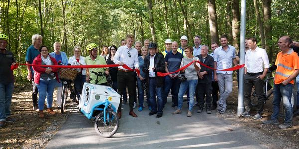 „Es ist ein Tag der Freude. Mit der Erneuerung des Waldradwegs entlang der alten Bahntrasse zum ehemaligen Bergwerksgelände Auguste Victoria 3/7 wurde jetzt eine wichtige Verbindung zum Stadtkern wiederhergestellt und der Umstieg vom Pkw auf das Rad gerade bei Pendlern gefördert“, sagte Bürgermeister Werner Arndt, der zudem betonte, dass die Arbeiten ökologisch begleitet wurden. Zudem sorgt eine intelligente Beleuchtung für mehr Sicherheit auch bei Dunkelheit.