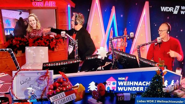 Zu guter Letzt wurde der WDR auf unsere Aktion aufmerksam und belohnte das Engagement der Musikschule mit einer Live-Schaltung aus dem Weihnachtskonzert ins Radio- und Fernsehprogramm. Moderatorin Evelyn Fürst-Heck plauderte via iPad und Internet mit Thomas Bug und Jan Malte Andresen aus dem Essener Glashaus. Nach einem kurzen aber herzlichen Austausch wurde das Marler Publikum aufgefordert im Anschluss ans Konzert möglichst großzügig das Weihnachtswunder mit dem Motto „Gemeinsam gegen den Hunger in der Welt“ zu unterstützen. Die Spenden aus unseren beiden Sammelaktionen summierten sich an diesem Abend auf insgesamt 2741,60 Euro! - ein toller Erfolg für alle Unterstützenden und vor allem für die Hilfsbedürftigen.