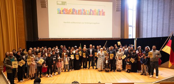 Darüber hinaus wurden die Männer und Frauen auch ermutigt, sich in die Gesellschaft aktiv einzubringen. Denn Ideen, Perspektiven und Engagement eines jeden Einzelnen und einer jeden Einzelnen sind wertvoll. Die neuen Staatsbürgerinnen und Staatsbürger kommen vor allem aus Syrien (56), der Türkei (16) und Polen sowie Ägypten (jeweils vier). Für den musikalischen Rahmen sorgten Stephan Arnold (Flügel) und seine Tochter Jule (Geige) . Mit dem gemeinsamen Singen der Nationalhymne und einem gemeinsamen Gruppenfoto klang die Einbürgerungsfeier aus.
