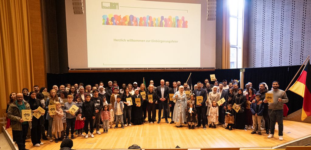 Aktuell leben in Marl rund 14.400 Menschen mit Einwanderungsgeschichte aus mehr als 120 Nationen. Im Jahr 2023 wurden 87 Personen eingebürgert, in 2024 waren es 259 und im Jahr 2025 bisher 367 (davon kamen 204 aus Syrien und 35 aus der Türkei, während 17 staatenlos waren).