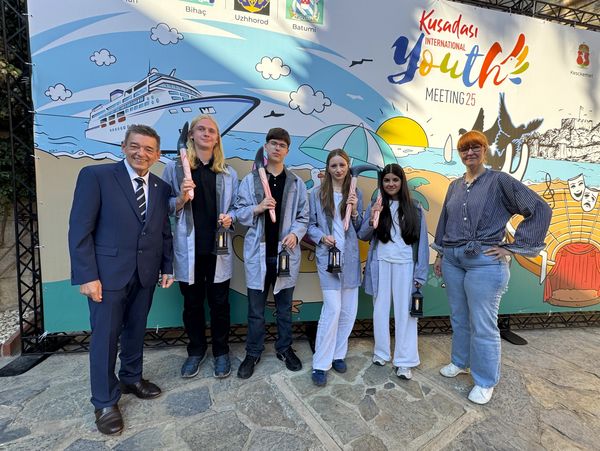 Eine Woche voller Programm, multikultureller Begegnungen und Sonnenschein liegt hinter ihnen: Maya, Daniel, Melek und Finn aus Marl nahmen vom 6. bis 12. Oktober am Internationalen Jugendtreffen in Kuşadası, der türkischen Hafenstadt an der Ägäisküste teil. Mit dabei waren natürlich auch Bürgermeister Werner Arndt und eine Delegation des Städtepartnerschaftsvereins Marl- Kuşadası. „Die internationale Zusammenkunft der Jugendlichen fördert Verständnis, Toleranz und Vielfalt in unserer Gesellschaft“, so Werner Arndt. „Ich wünsche den jungen Leuten, dass sie diese wichtigen, grenzübergreifenden Austauscherfahrungen mitnehmen und die internationalen Kontakte weiterhin geknüpft und gestärkt werden können.“