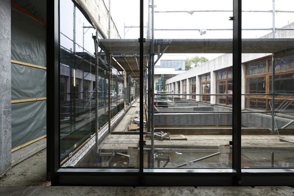 Im Zentralgebäude (Bauabschnitt 1) wurde im dritten Quartal unter anderem die Schutzeinhausung samt Durchstützung für die neuen Satteldächer vollständig fertiggestellt. Auch die Innenhoffassaden sind – abgesehen von einzelnen Schiebeelementen – abgeschlossen. „Hinzu kommen maßgebliche Fortschritte in der technischen Infrastruktur“, berichtete Daniela Thorns von der BOS Projektmanagement GmbH in der Sitzung am Donnerstag. Die Hauptversorgungstrassen für Kälte, Heizung und Feuerlöschanlagen sind nahezu vollständig installiert, ebenso laufen Abdichtungs- und Putzarbeiten in den Technikräumen erfolgreich an.