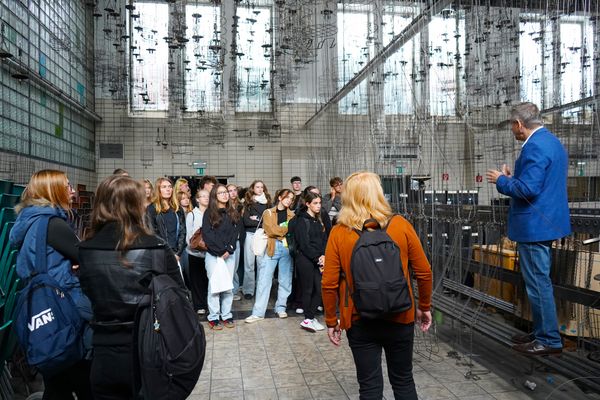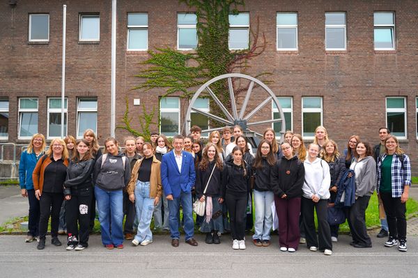 Im Anschluss konnten die Jugendlichen „Geschichte zum Anfassen“ erleben: Zusammen mit dem Bürgermeister ging es in die Weißkaue der ehemaligen Zeche Auguste Victoria. Hier hängen noch immer die Kauenkörbe, in denen die Bergleute ihre Kleidung verstauten. Die Jugendlichen erfuhren viel Wissenswertes über den Arbeitsalltag der Kumpel. Zum Abschluss wurde vor dem Förderturm ein Erinnerungsfoto für die Mädchen und Jungen geknipst.