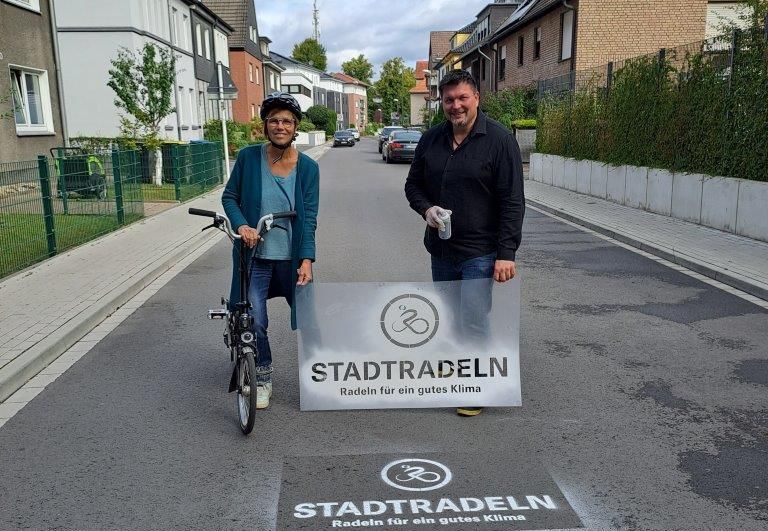 Marls Technische Dezernentin Andrea Baudek will mit einem eigenen Team zur neuen Bestmarke beitragen: „Schließlich tut man nicht nur etwas für die eigene Gesundheit, sondern auch für die Umwelt.“ Gemeinsam mit Christian Ueckert vom Amt für Klimaschutz und Nachhaltigkeit war sie dieser Tage im Stadtgebiet unterwegs, um mit einer Sprühkreideaktion für das Stadtradeln zu werben. Übrigens werden im Rahmen des Wettbewerbs die aktivsten Radfahrer ausgezeichnet, und es warten attraktive Sachpreise auf die Teilnehmer. Die Preise werden dank der großzügigen Unterstützung der Sparkasse Vest Recklinghausen, Radwelt Jepkens, Theater Marl, VHS Marl, Rebeq Radstation und der Fahrradwerkstatt „alte Schmiede“ bereitgestellt.