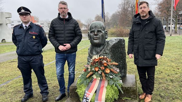 Am Bonhoeffer-Denkmal vor dem Rathaus legten Thomes Terhorst und Benedikt Stelthove, Pastoralreferent in der Pfarrleitung Heilige Edith Stein, zum Gedenken einen Kranz nieder. „Heute gedenken wir der Opfer von Krieg und Gewalt aller Völker. Wir gedenken der Soldaten, die in den Weltkriegen starben, der Menschen, die durch Kriegshandlungen oder in Gefangenschaft, als Vertriebene und Geflüchtete ihr Leben verloren. Erinnern heißt Verantwortung übernehmen“, so der Bürgermeister in seiner Rede.