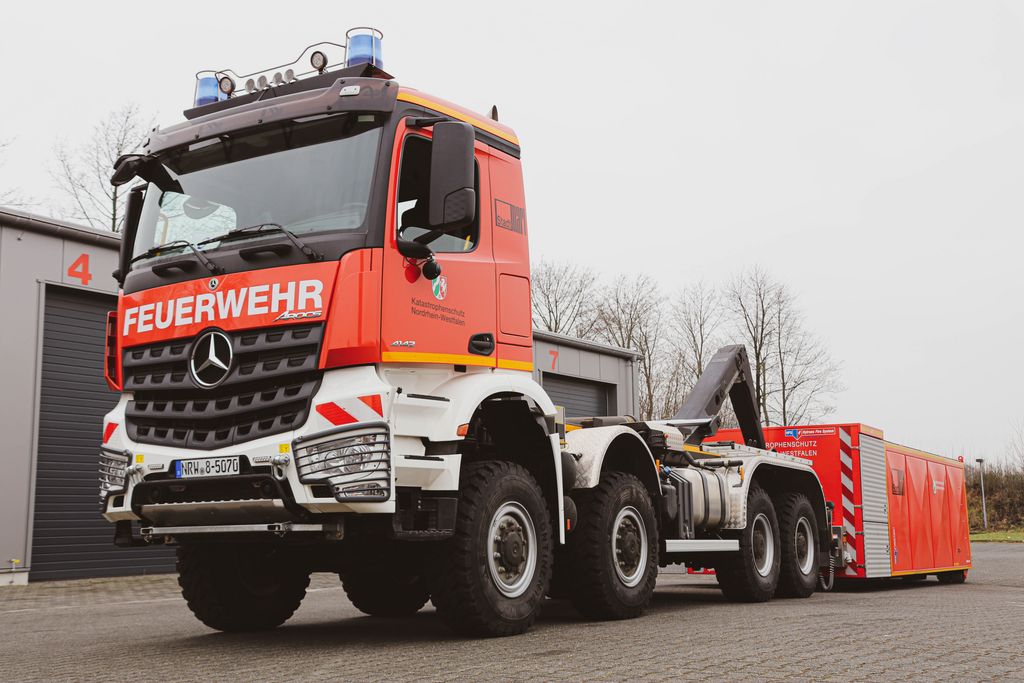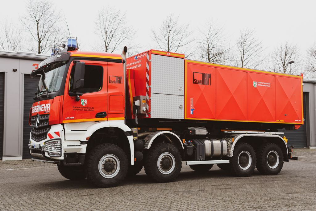 Ein voll geländegängiges Wechselladerfahrzeug mit einem dauerhaft aufgerüsteten mobilen Containersystem, das auf die Wasserförderung über lange Wegstrecken spezialisiert ist (HytransFireSystem). Zu den Einsatzmöglichkeiten zählen Brandereignisse und Hochwasserlagen gleichermaßen.